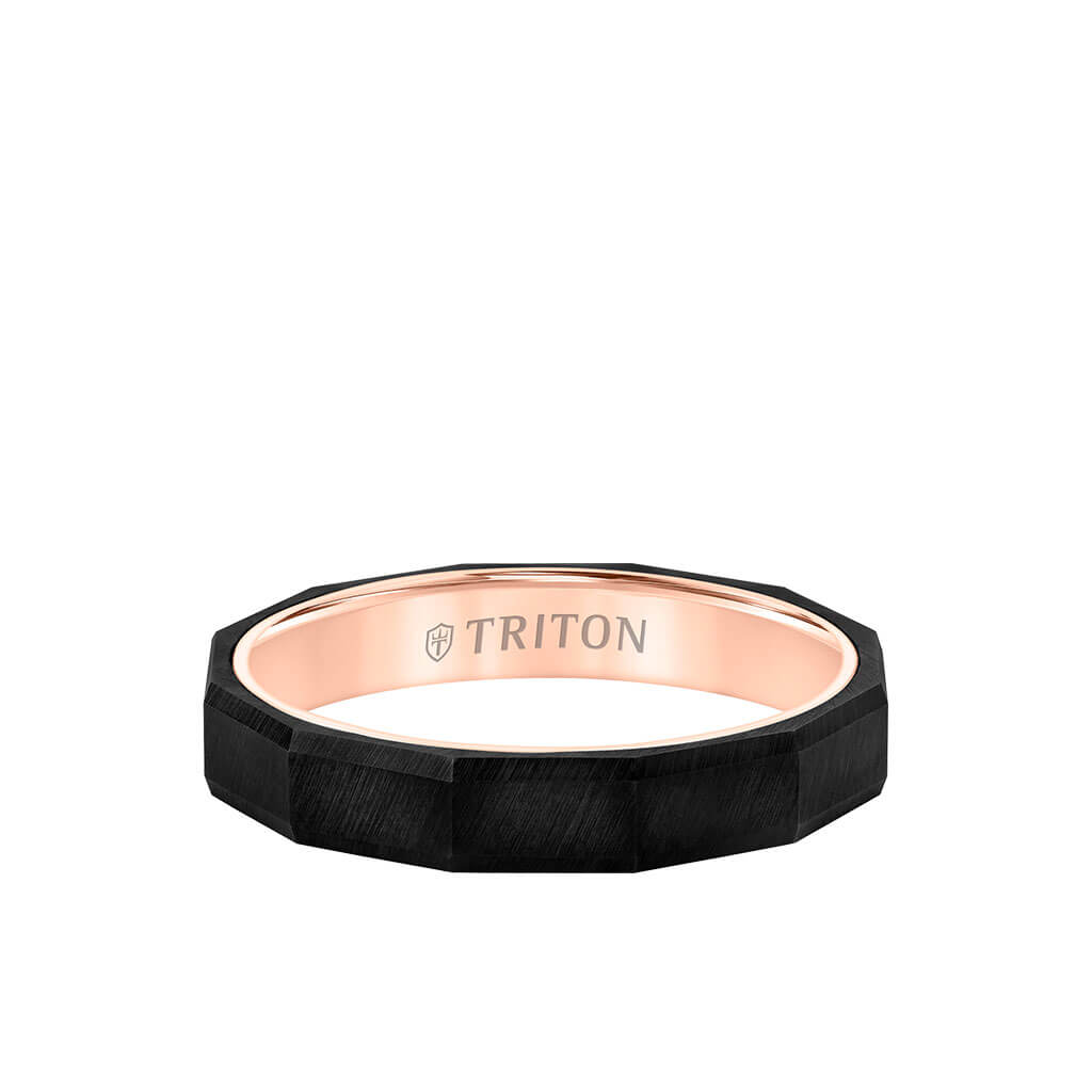 4MM Tungsten Carbide + 14K Gold Ring - Faceted Pattern 14K Gold Interior