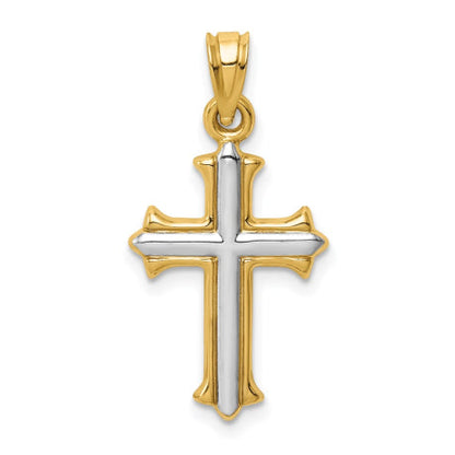 14k w/Rhodium Reversible Hollow Cross Pendant