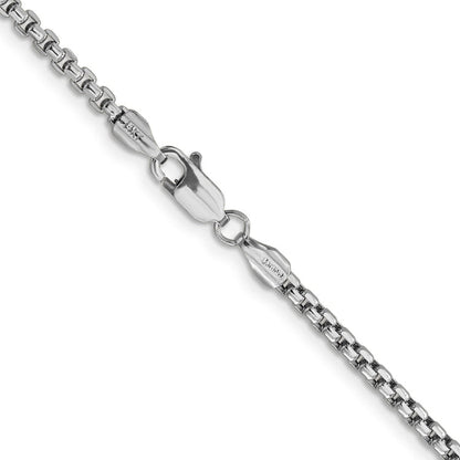 14K White Gold 20 inch 2.45mm Semi-Solid Round Box with Lobster Clasp Chain