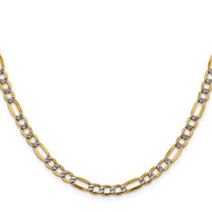 14K 24 inch 5.25mm Semi-Solid with Rhodium Pav��� Figaro with Lobster Clasp Chain