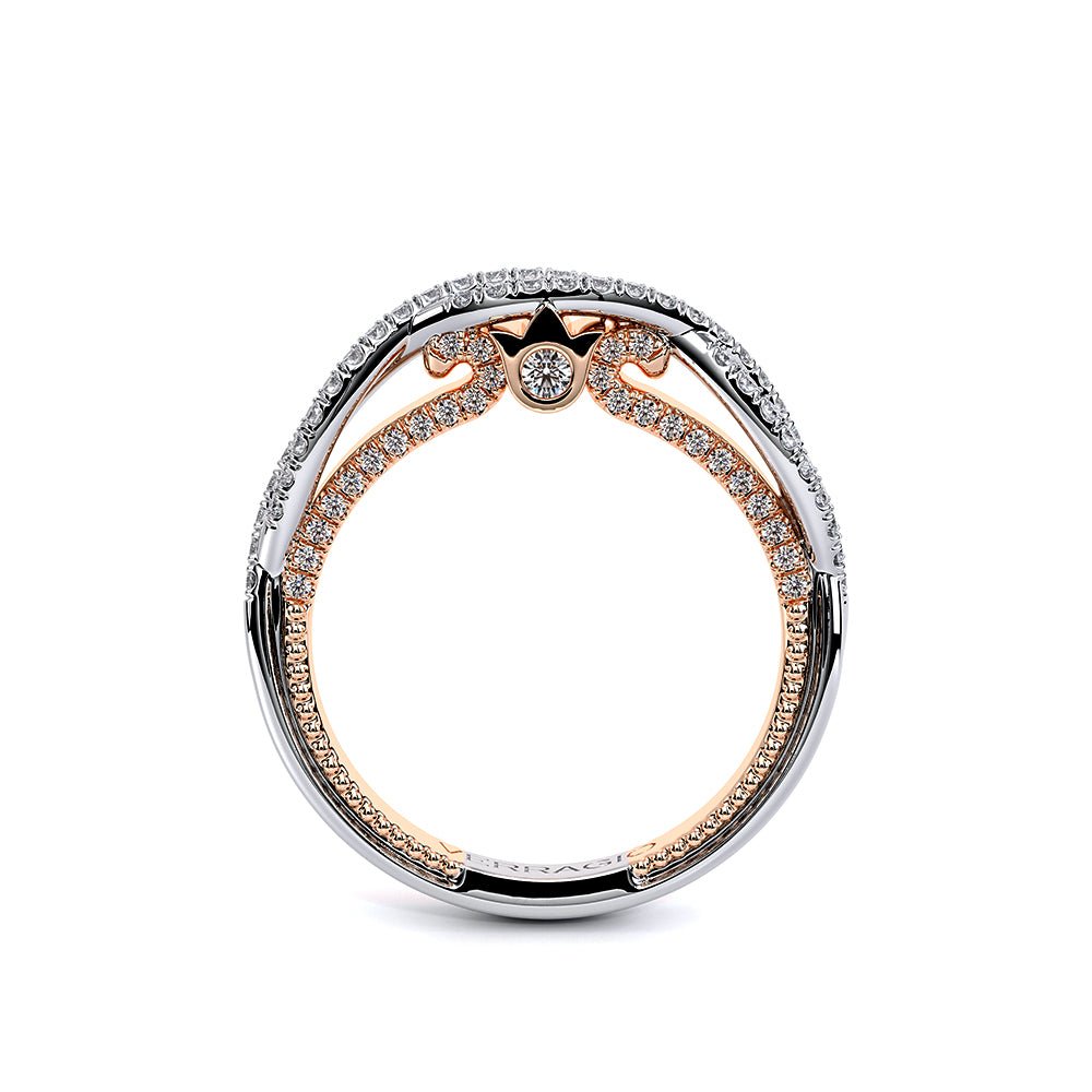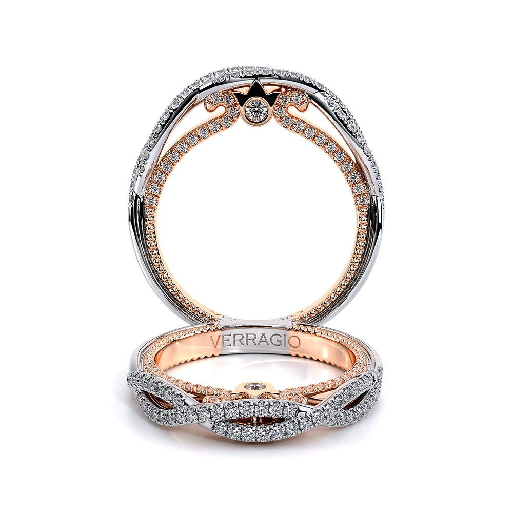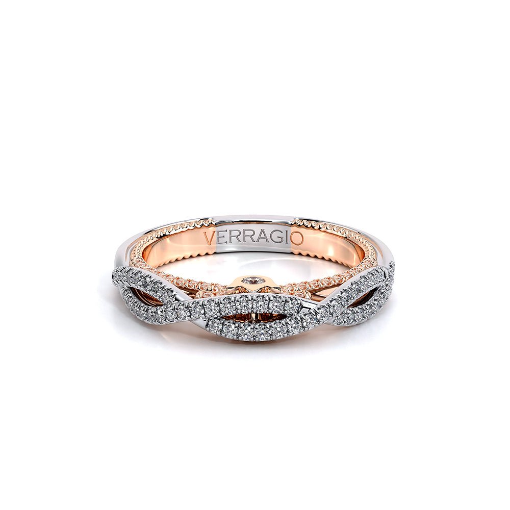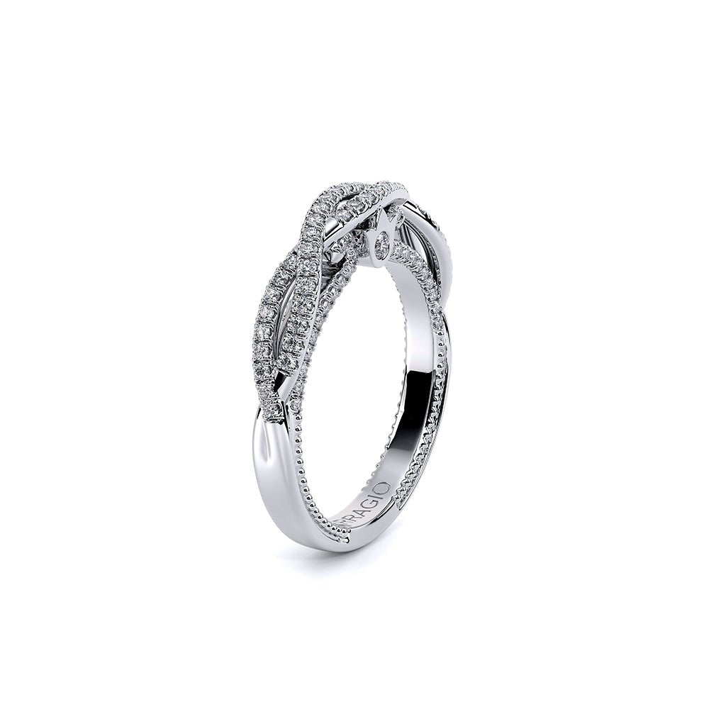 Elevate your bridal look with the Verragio Couture Collection Women's Diamond Wedding Band. Style Number COUTURE-0481W features a twisted band adorned with round brilliant diamonds, offering a touch of luxury starting at $4,800.00 USD*.