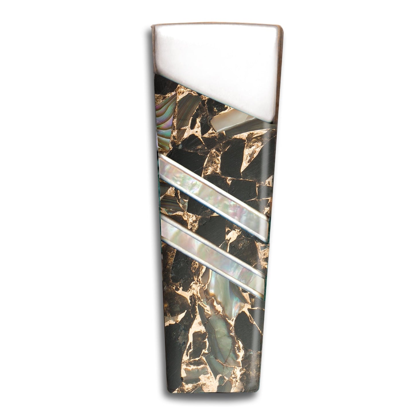 Kingman Blue and Green Turquoise and Obsidian from Arizona; Abalone from the Baja, Bronze and Zinc from Mother Earth. Toss in some alchemy and the artisan’s eye for spectacular color combinations and you have our new Gemstone Exotic Collection.