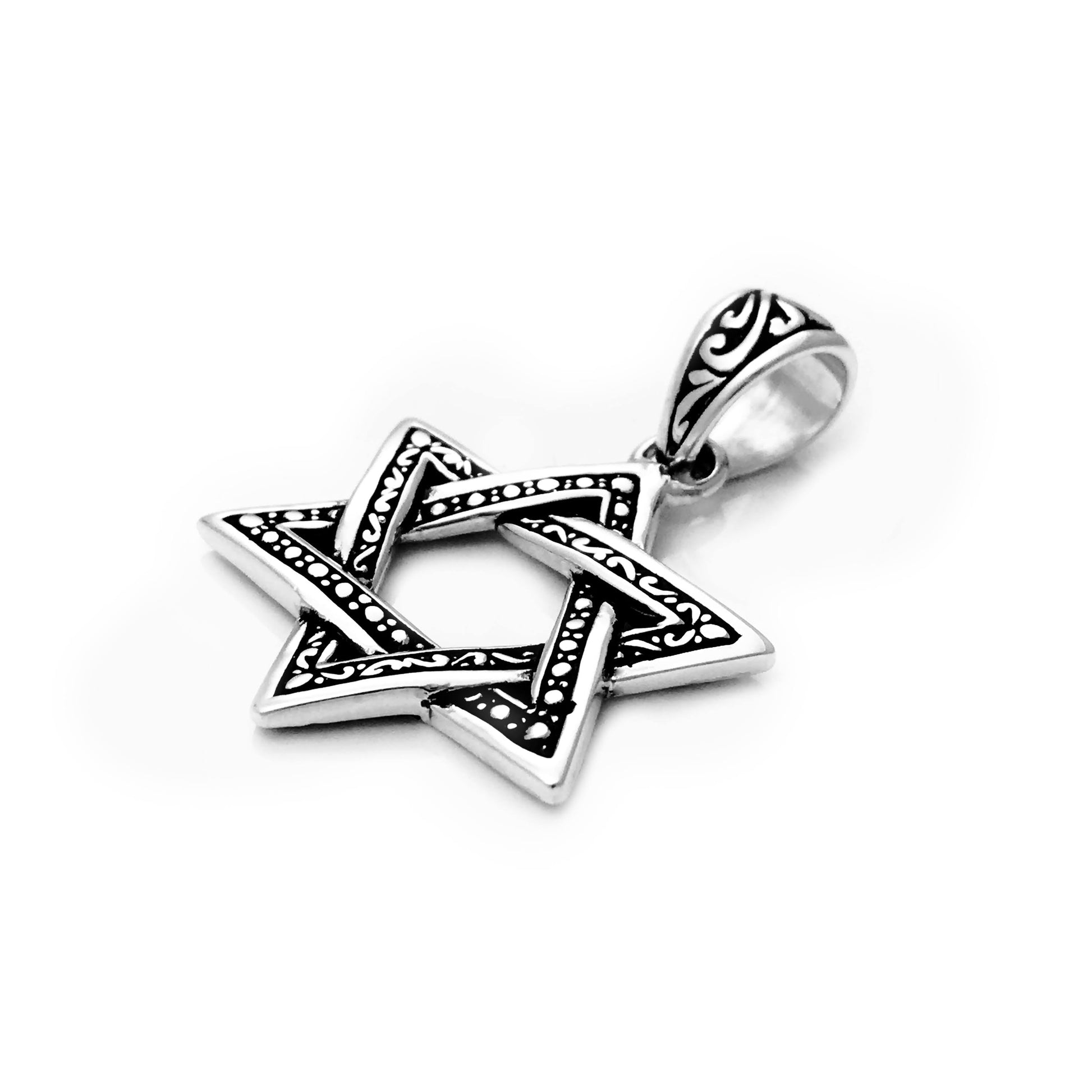The Moses pendant, a highly adorned version of the Star of David, features intertwining patterns that elevate the classic symbol into the realm of fashion.