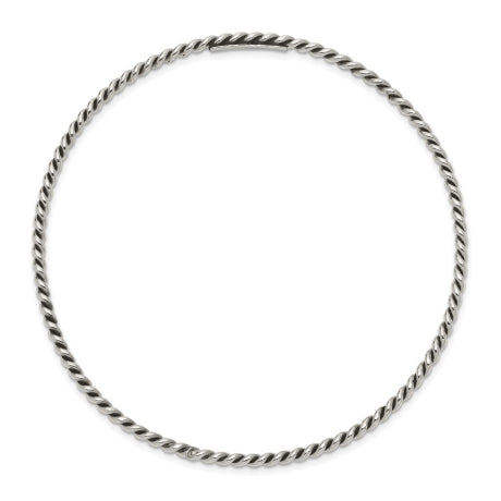 Sterling Silver Antiqued 2mm Twisted Slip-on Bangle