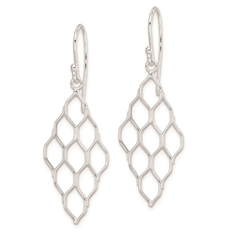 Sterling Silver Rhodium Plated Honeycomb Dangle Earrings