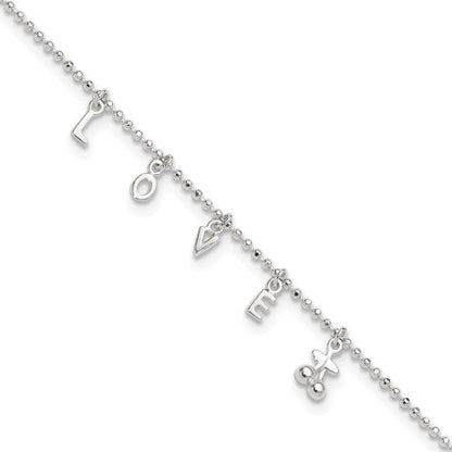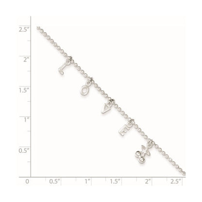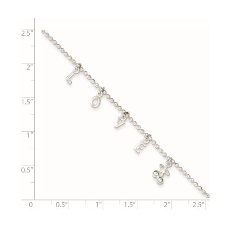 Sterling Silver LOVE 10 in Plus1 in Ext. Anklet