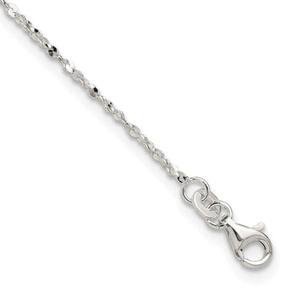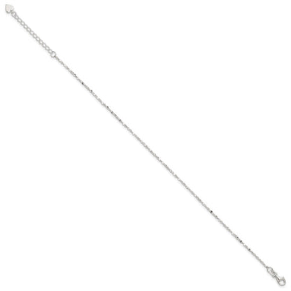 Sterling Silver Twisted Serpentine Heart 9 inch Plus 1.5 inch ext. Anklet