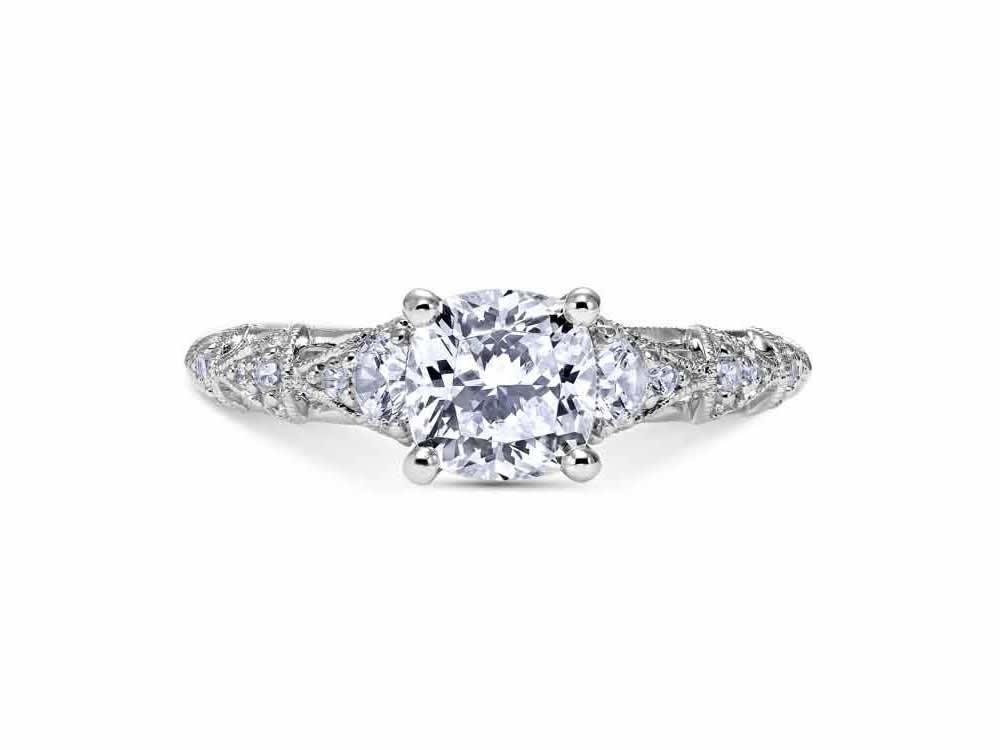 Introducing the Scott Kay Women's Diamond Engagement Ring from the Heaven's Gates collection. This classic style features round diamonds and milgrain open arches down the shank, with a suggested center stone of 1.50ct Cushion Diamond. Center stone sold separately. Customize your ring by calling 1-586-939-5100.