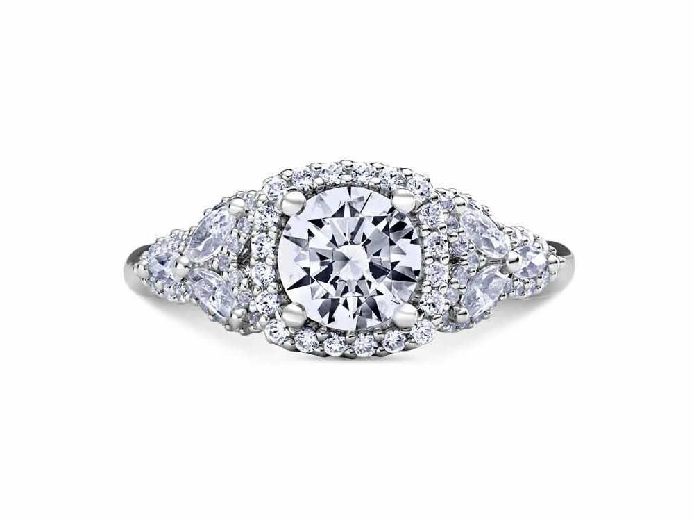 Elegantly designed Scott Kay Namaste collection women's diamond engagement ring featuring a cushion-shaped halo and marquise and round diamond shank. With a diamond weight of 0.98ct and suggested center stone of 1.50ct cushion diamond. Center stone sold separately. Customization options available. Contact us for more information.