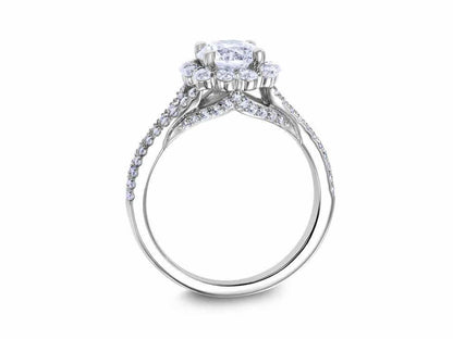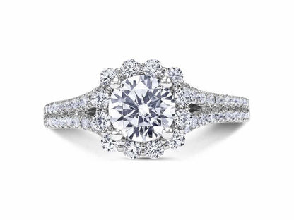Introducing the Scott Kay Women's Diamond Engagement Ring from the Namaste Collection. This exquisite ring features a round diamond halo, diamond split shank, and a diamond-accented namaste on the profile. With a total diamond weight of 0.70ct, this ring is designed to showcase a 1.00ct round diamond center stone (sold separately). Elevate your proposal with this stunning piece.