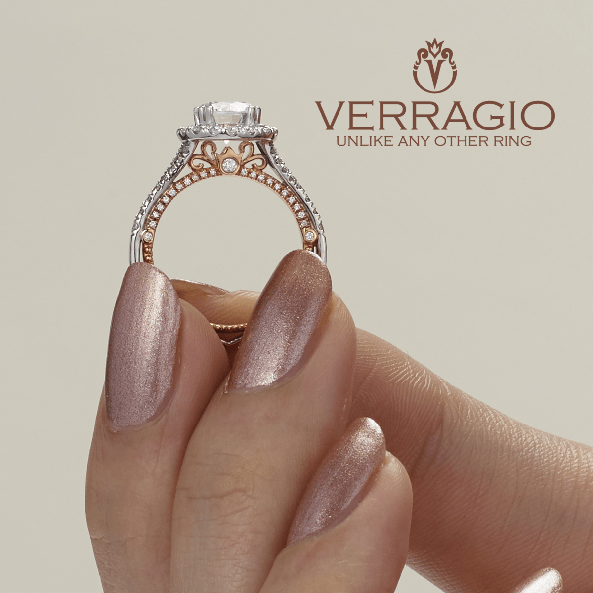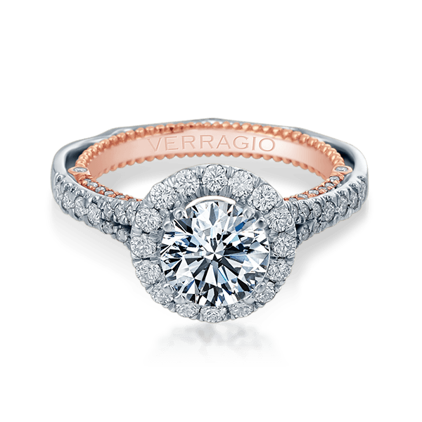 Elevate your love story with the Verragio Women's Engagement Ring from the Venetian Collection. Crafted with a round diamond halo and intricate diamond detailing, this ring is a masterpiece of elegance and sophistication. Starting at $6,150.00 USD.